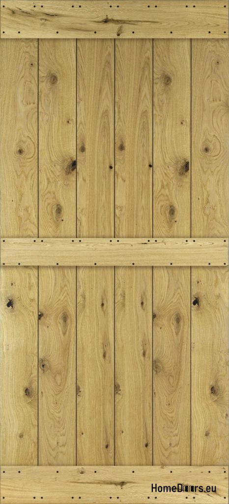 Drzwi o konstrukcji deskowej oklejone naturalnym fornirem. Krawędzie desek zdobi drewno naturalne wybranych gatunków. Drzwi wykończone bezpiecznym dla zdrowia i otoczenia, matowym olejem bezbarwnym, o wysokiej odporności na ścieranie. Skrzydło z jednej strony jest gładkie.
