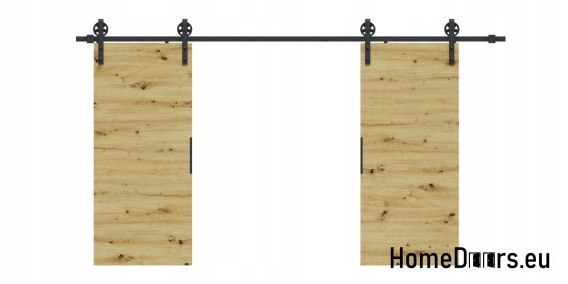 W zestawie otrzymujesz kompletne drzwi przesuwne 120 cm – skrzydło w kolorze Dębu Artisan + czarny system przesuwny LOFT 04 + uchwyt i prowadniki.