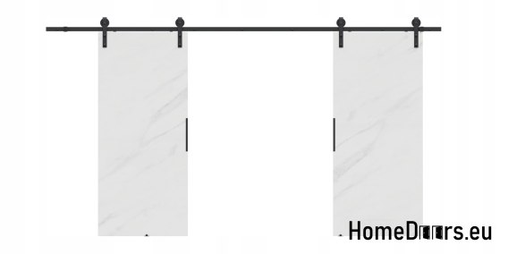 W zestawie otrzymujesz kompletne drzwi przesuwne 148 cm – skrzydło w kolorze Marmuru Białego + czarny system przesuwny LOFT 01 + uchwyt i prowadniki.