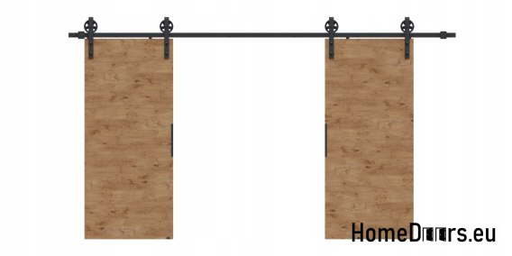 W zestawie otrzymujesz kompletne drzwi przesuwne 148 cm – skrzydło w kolorze Dębu Lancelot + czarny system przesuwny LOFT 04 + uchwyt i prowadniki.
