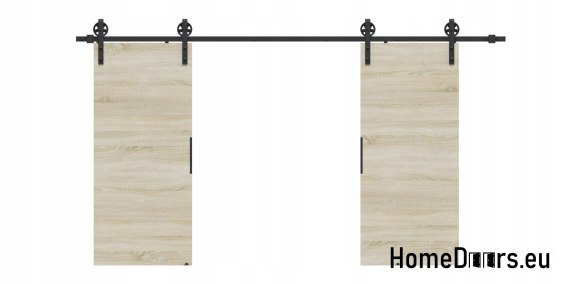 W zestawie otrzymujesz kompletne drzwi przesuwne 148 cm – skrzydło w kolorze Dębu Sonoma + czarny system przesuwny LOFT 04 + uchwyt i prowadniki.