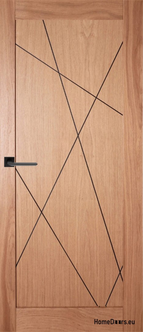 Les portes en bois à l’intérieur des locaux sont des portes en bois naturel sélectionné, fini avec un vernis transparent. L’épaisseur du vantail de la porte est de 40 mm. La porte est réalisée en panneau MDF recouvert d’un placage de chêne ou de frêne naturel avec un panneau MDF noir recouvert d’un placage de chêne ou de frêne. En option, ils sont équipés d’une serrure et d’une gâche noires et de charnières noires.