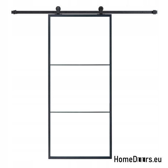 • Brève description: Cadre en acier, porte loft coulissante avec 3 champs en verre et un ensemble moderne d'accessoires coulissants